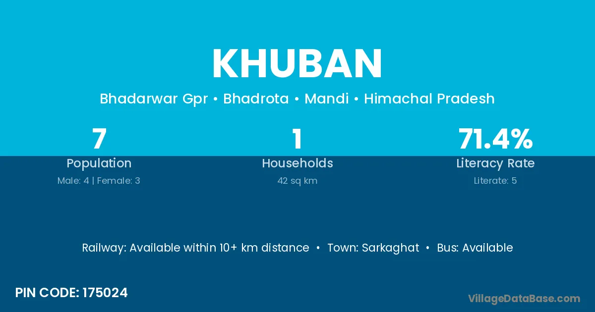 Khuban village has a total population of 7 people, of which 4 are males and 3 are females.