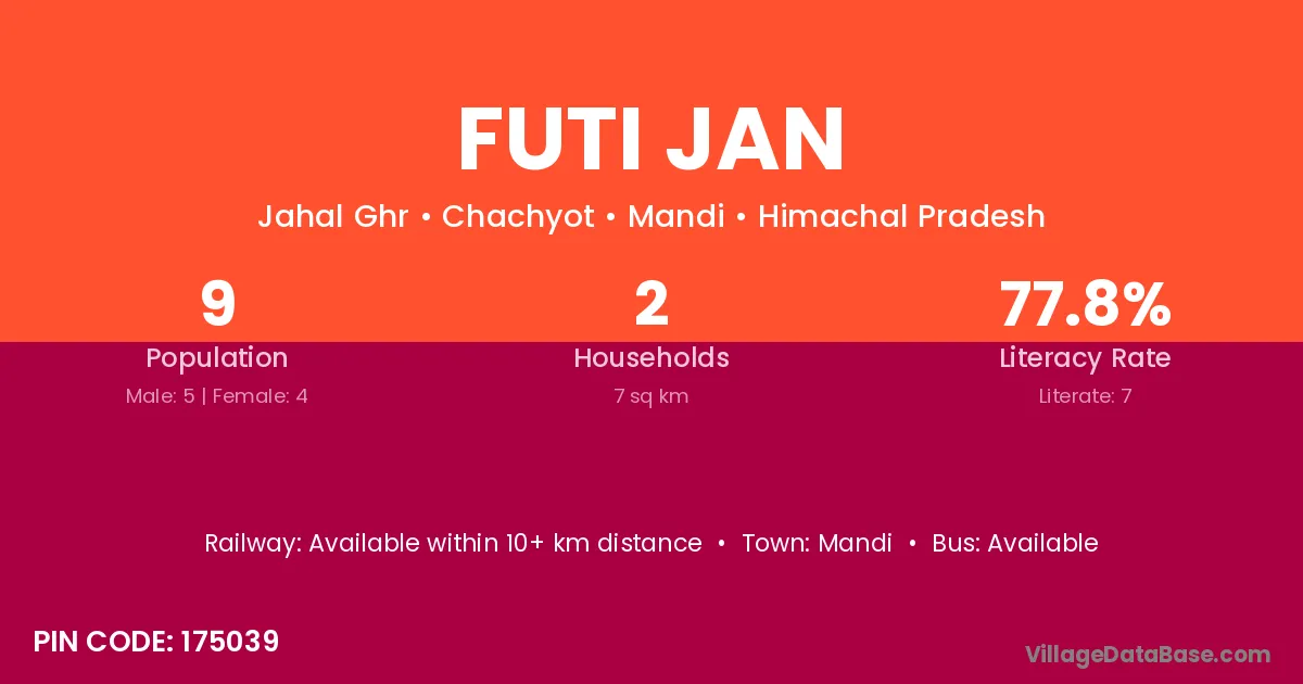 Futi Jan village has a total population of 9 people, of which 5 are males and 4 are females.