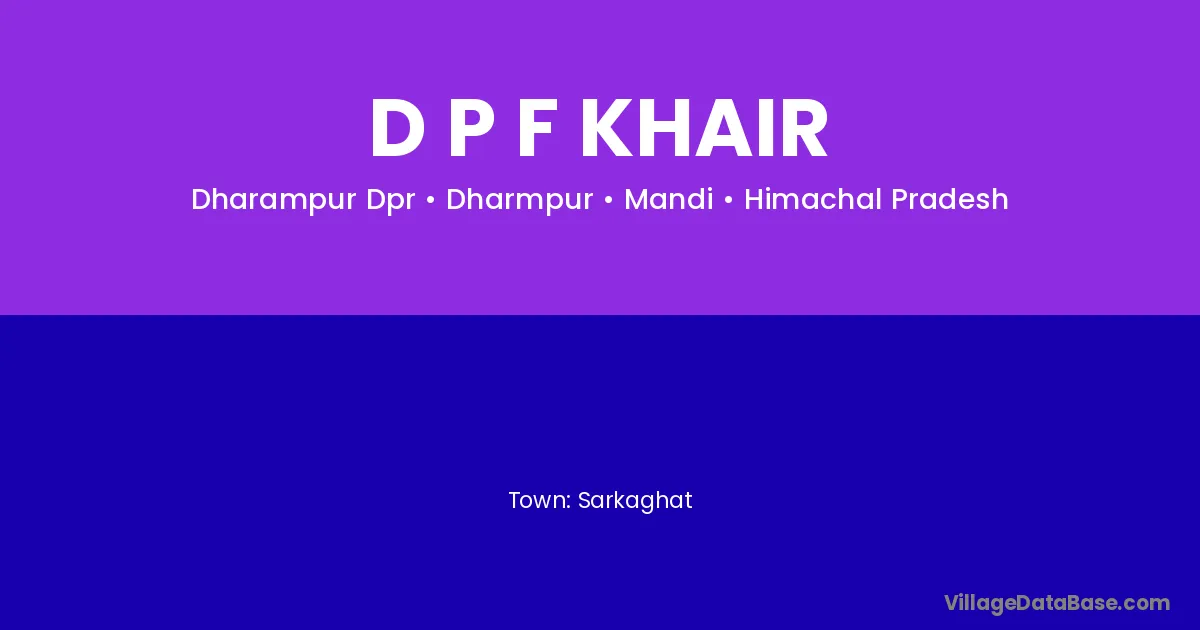 D P F Khair village is located in the Dharmpur Tehsil of the Mandi district in Himachal Pradesh .
