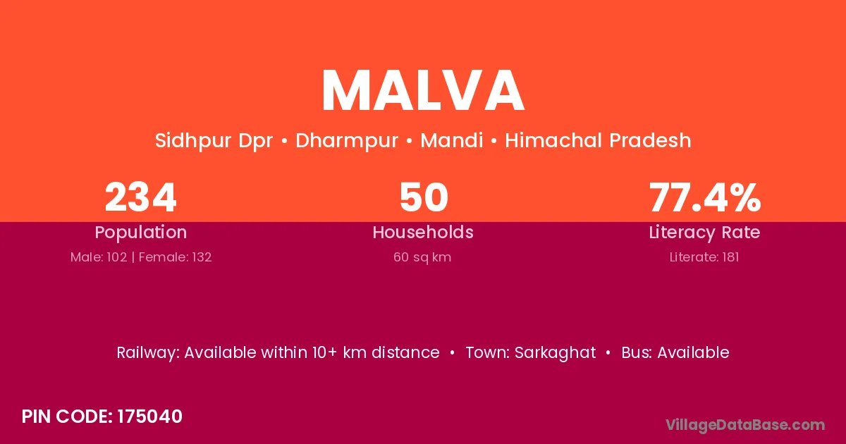 Sarkaghat is the nearest town to Malva village for major economic activities