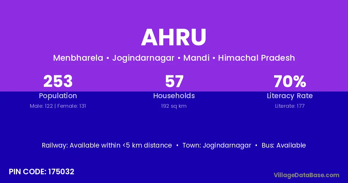 Jogindarnagar is the nearest town to Ahru village for major economic activities