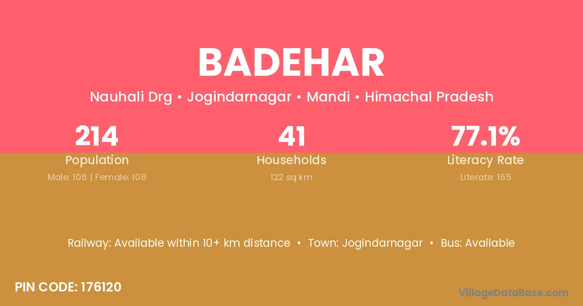 Jogindarnagar is the nearest town to Badehar village for major economic activities