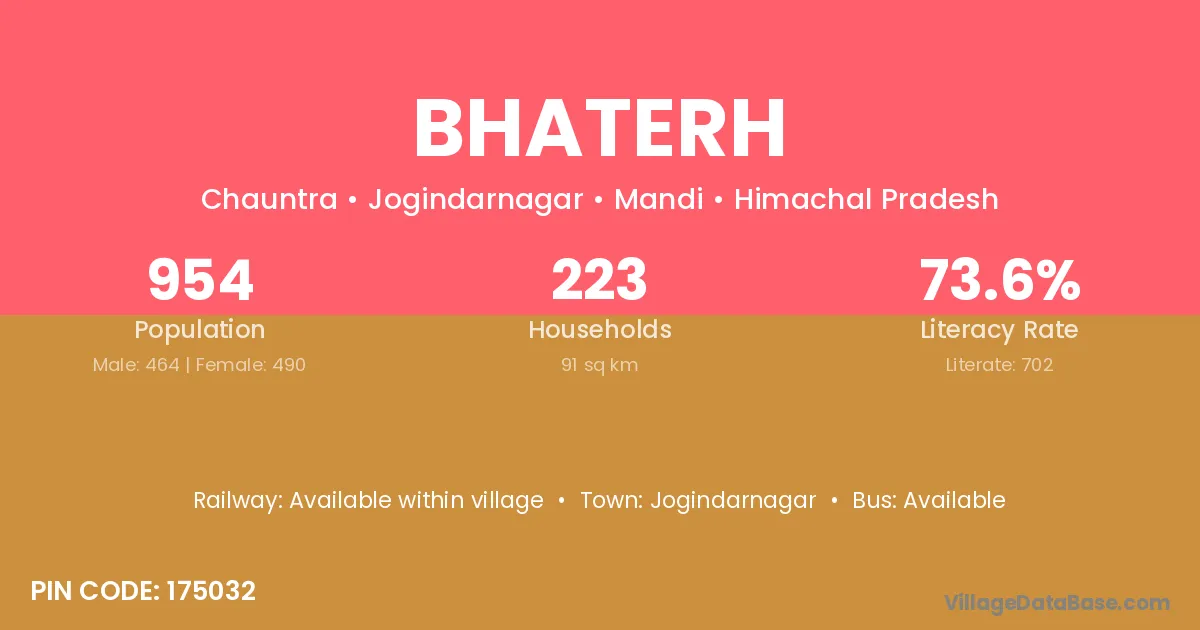 Jogindarnagar is the nearest town to Bhaterh village for major economic activities