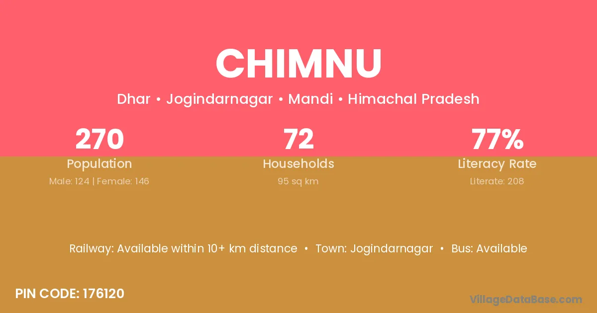 Jogindarnagar is the nearest town to Chimnu village for major economic activities