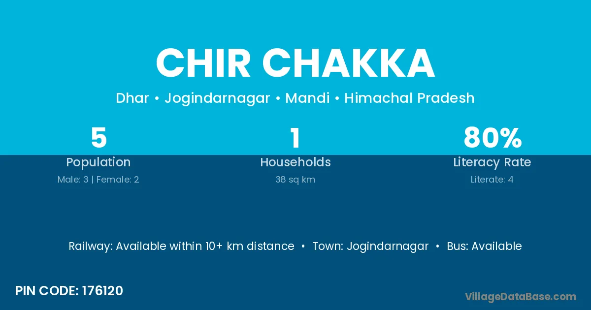 Jogindarnagar is the nearest town to Chir Chakka village for major economic activities