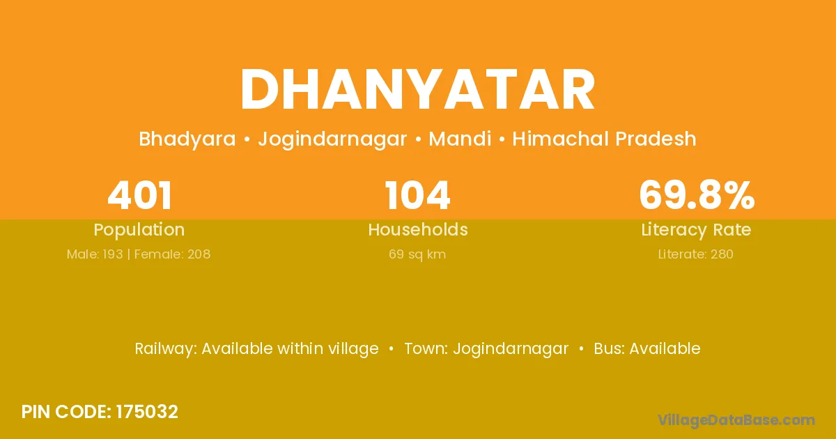 Jogindarnagar is the nearest town to Dhanyatar village for major economic activities