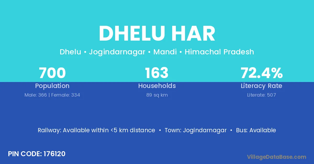 Jogindarnagar is the nearest town to Dhelu Har village for major economic activities