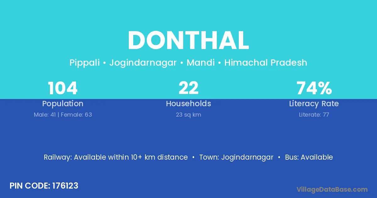Jogindarnagar is the nearest town to Donthal village for major economic activities