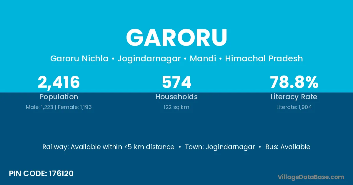 Jogindarnagar is the nearest town to Garoru village for major economic activities