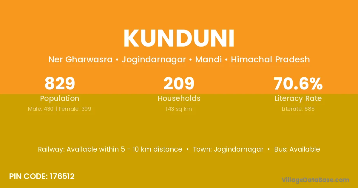 Jogindarnagar is the nearest town to Kunduni village for major economic activities