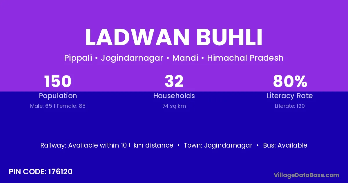 Jogindarnagar is the nearest town to Ladwan Buhli village for major economic activities