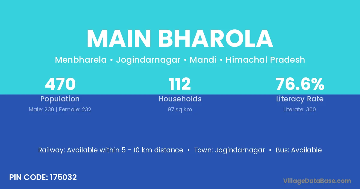 Jogindarnagar is the nearest town to Main Bharola village for major economic activities
