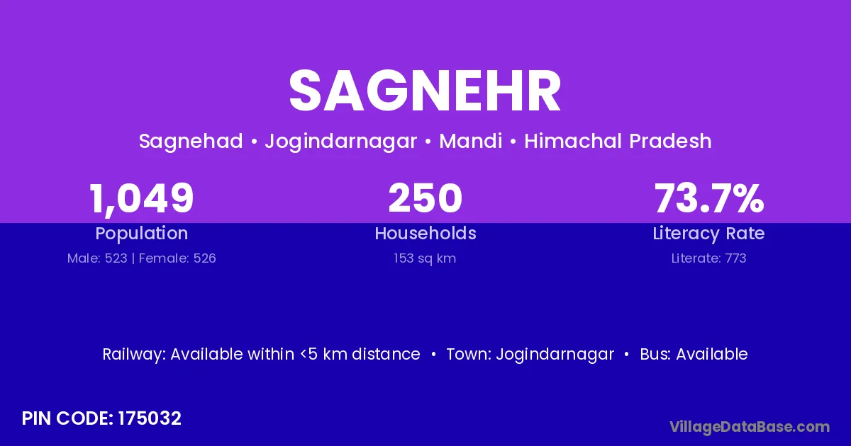 Jogindarnagar is the nearest town to Sagnehr village for major economic activities