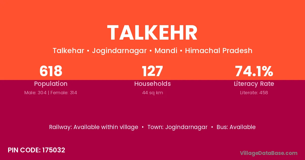 Jogindarnagar is the nearest town to Talkehr village for major economic activities