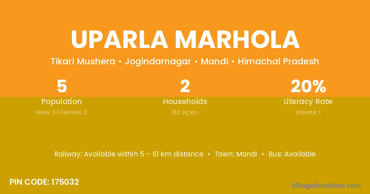 Mandi is the nearest town to Uparla Marhola village for major economic activities