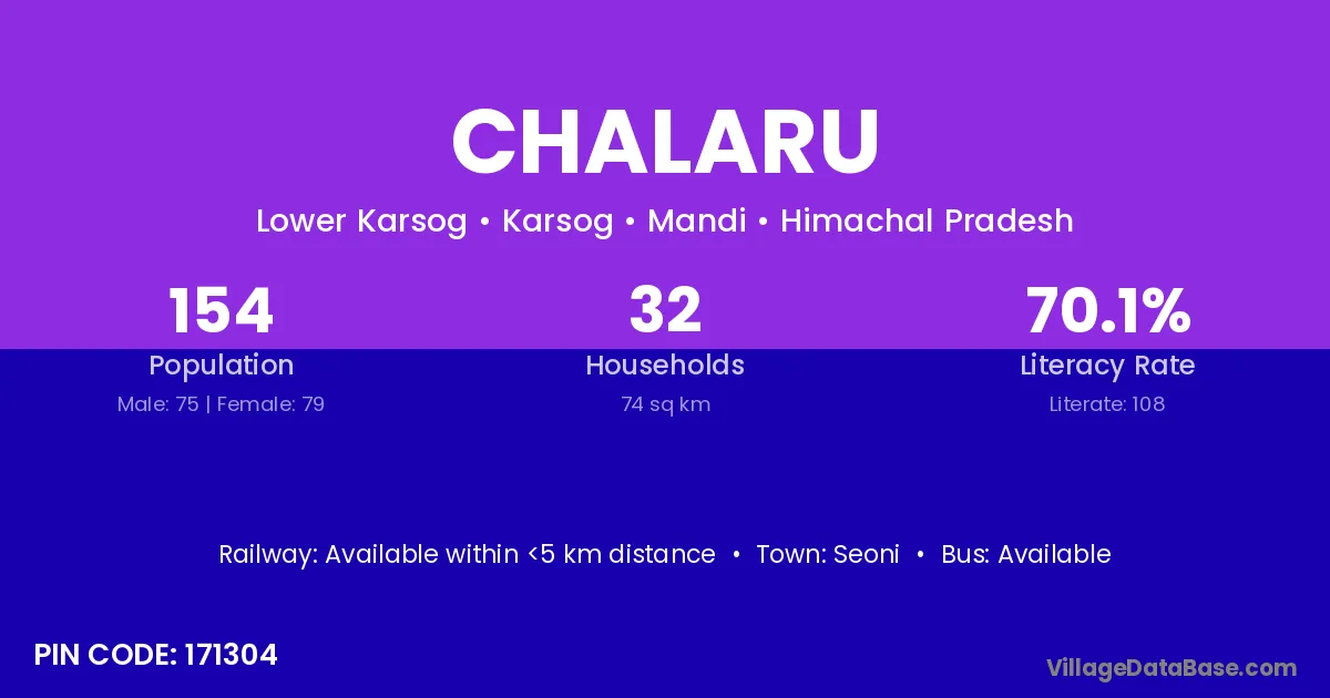 Chalaru village has a total population of 154 people, of which 75 are males and 79 are females.