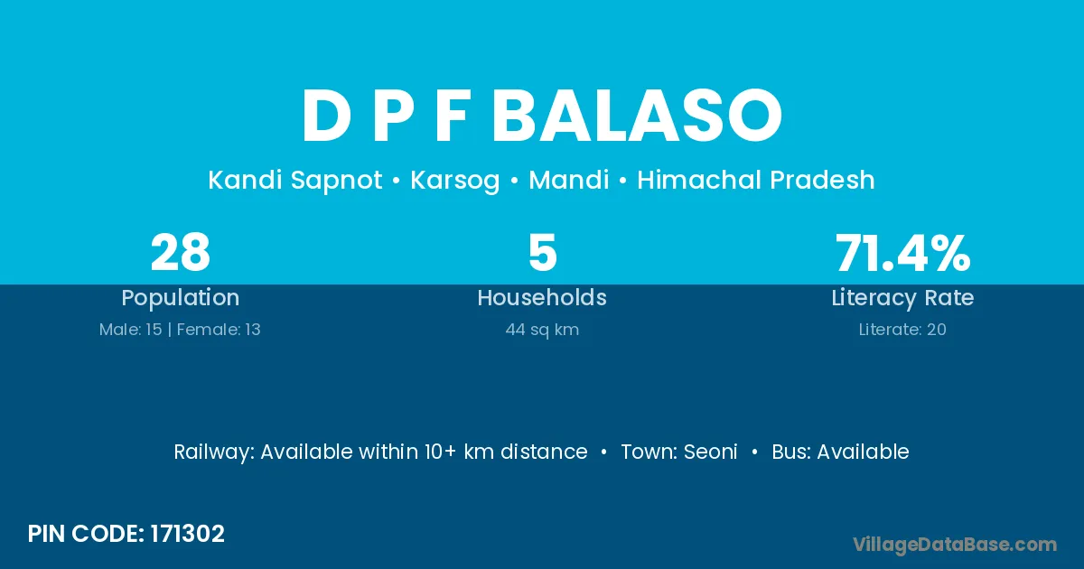 D P F Balaso village has a total population of 28 people, of which 15 are males and 13 are females.