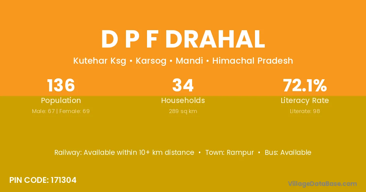 D P F Drahal village has a total population of 136 people, of which 67 are males and 69 are females.