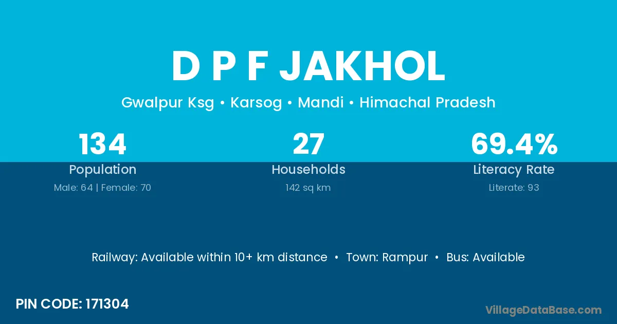 D P F Jakhol village has a total population of 134 people, of which 64 are males and 70 are females.