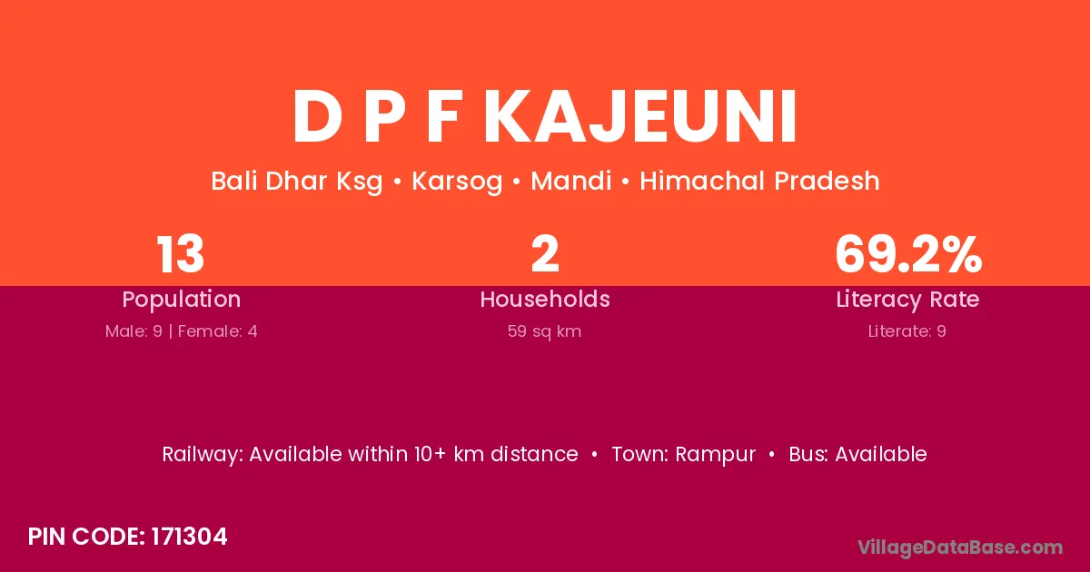 D P F Kajeuni village has a total population of 13 people, of which 9 are males and 4 are females.