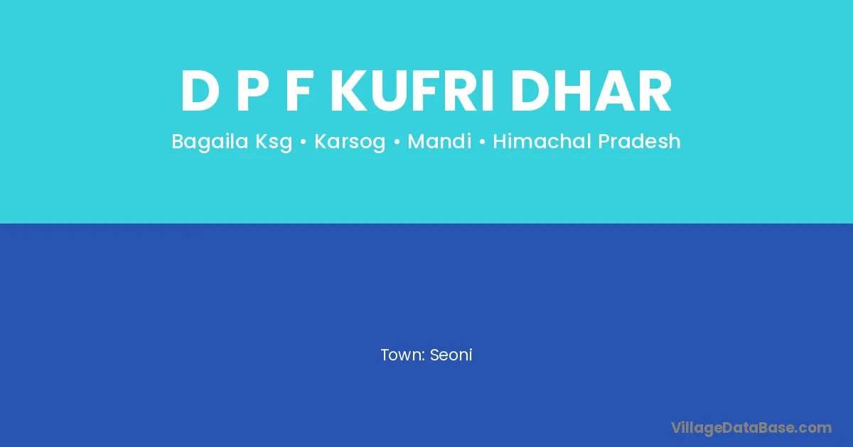 Seoni is the nearest town to D P F Kufri Dhar village for major economic activities