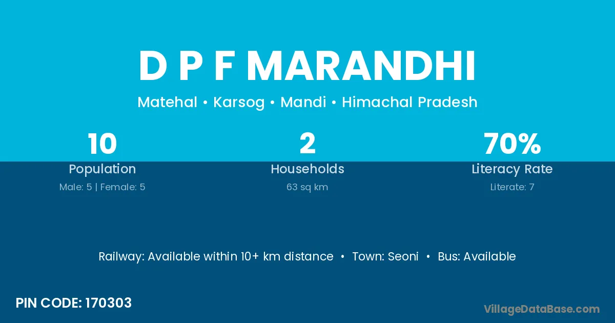 D P F Marandhi village has a total population of 10 people, of which 5 are males and 5 are females.