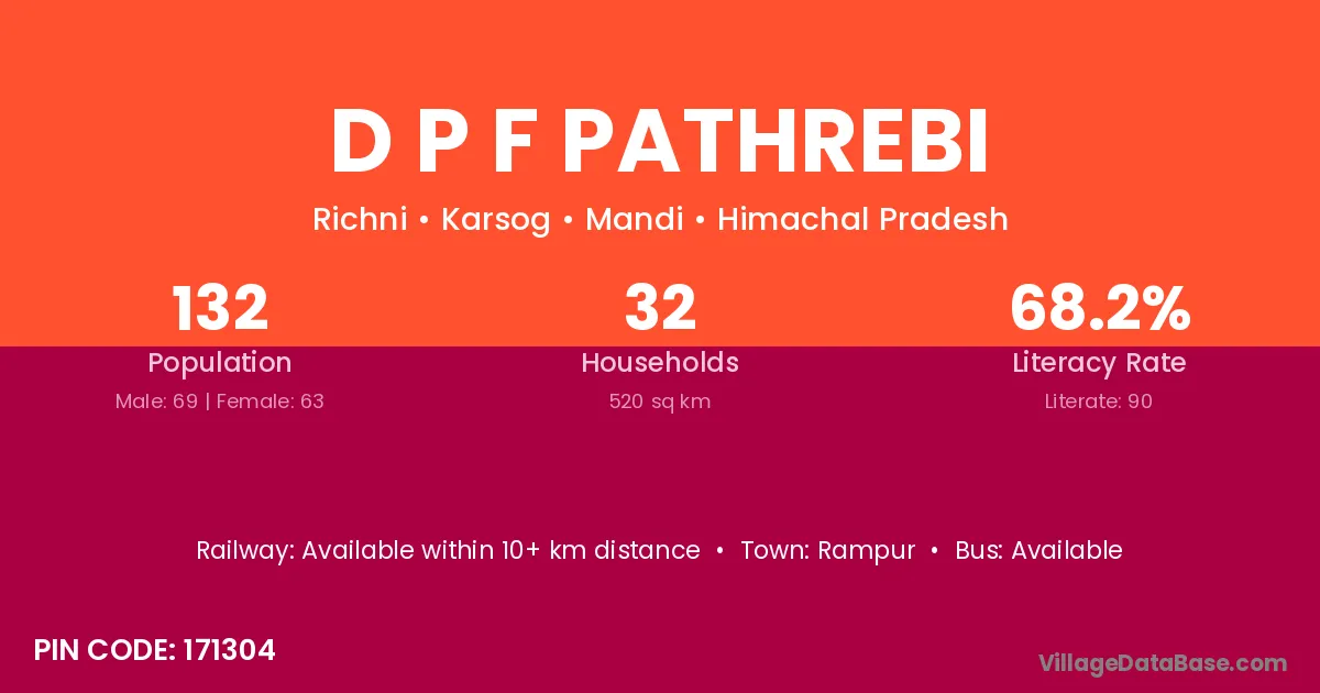 D P F Pathrebi village has a total population of 132 people, of which 69 are males and 63 are females.