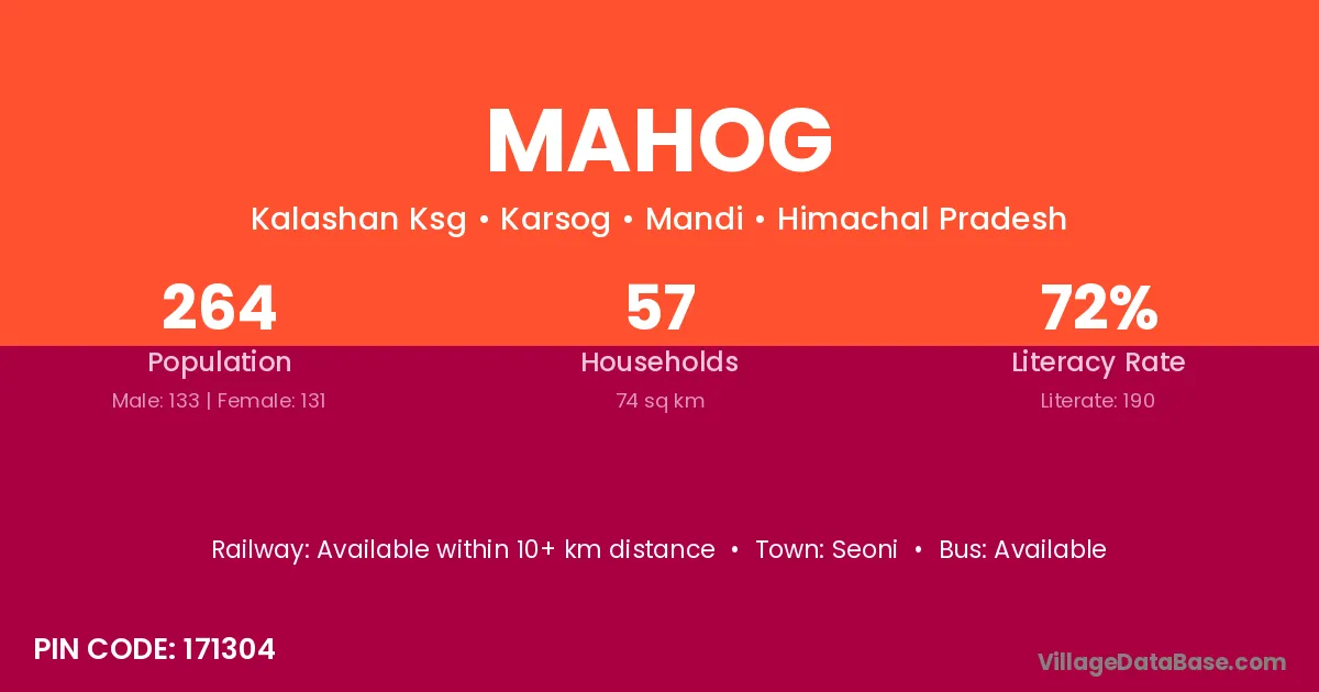 According to Census 2011 information, the village code of Mahog village is 171304.