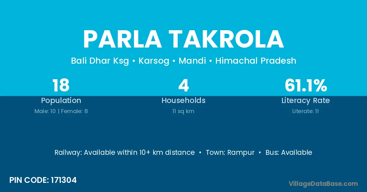 Parla Takrola village is located in the Karsog Tehsil of the Mandi district in Himachal Pradesh .