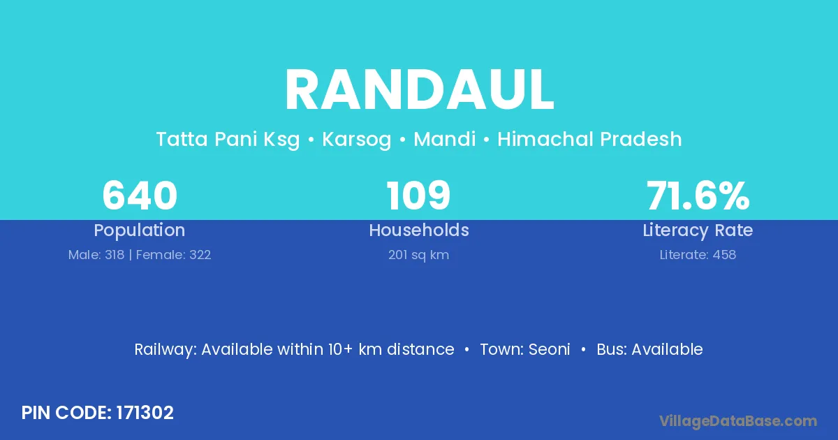 Randaul village has a total population of 640 people, of which 318 are males and 322 are females.