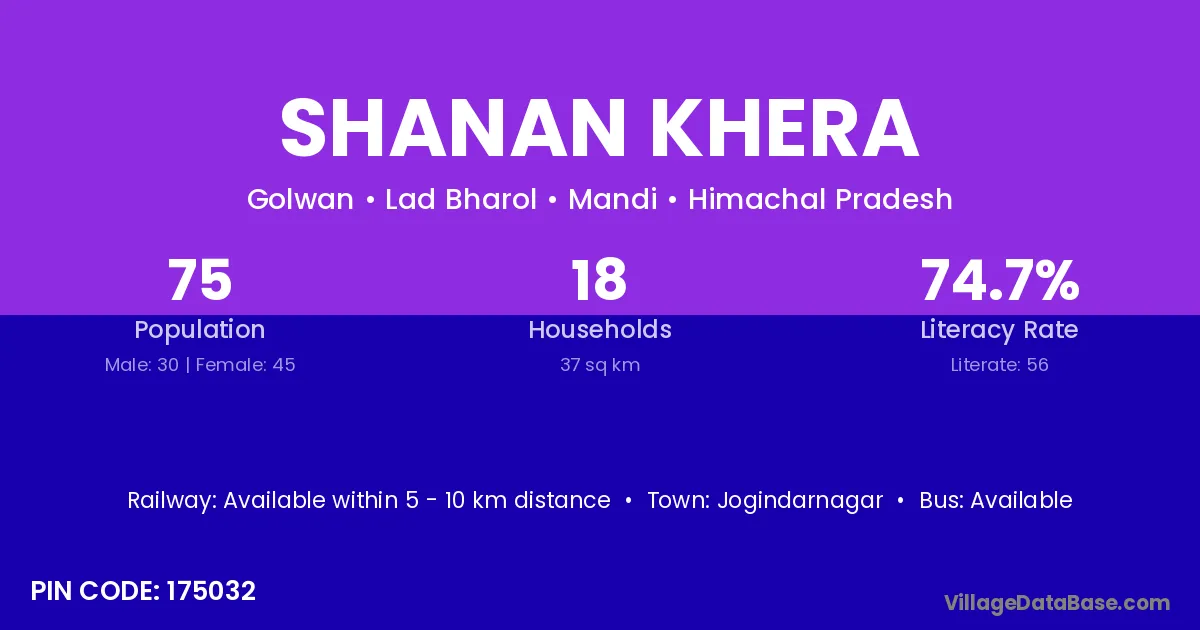 Jogindarnagar is the nearest town to Shanan Khera village for major economic activities