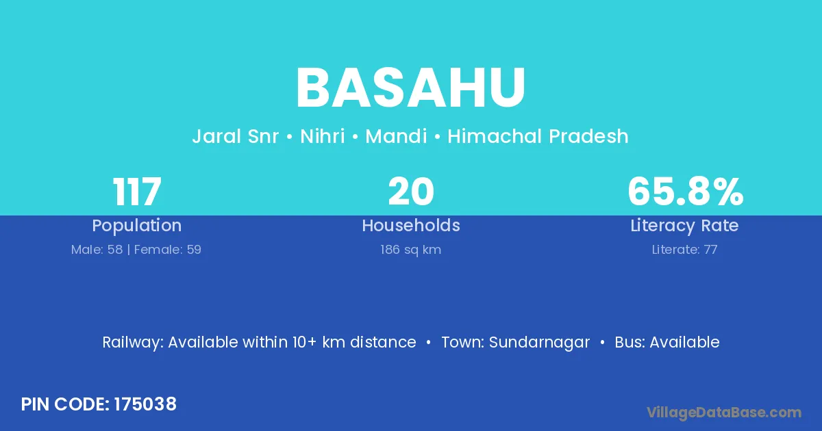 Basahu village has a total population of 117 people, of which 58 are males and 59 are females.