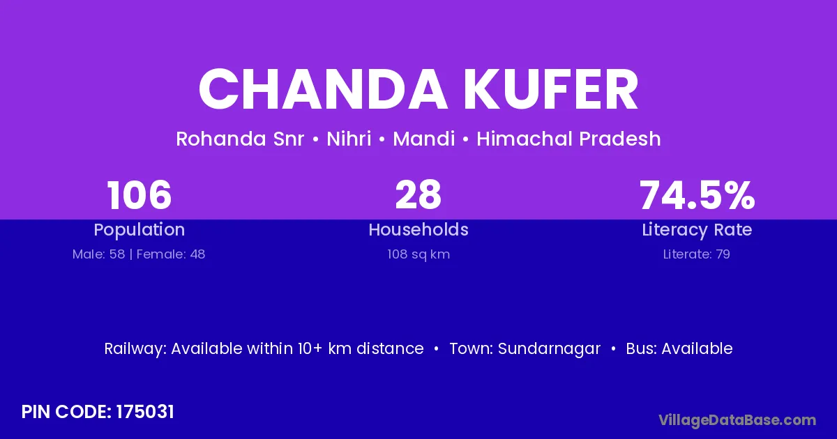 Sundarnagar is the nearest town to Chanda Kufer village for major economic activities