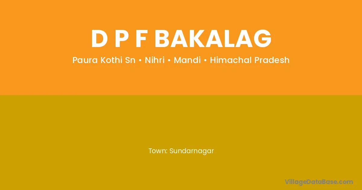 Sundarnagar is the nearest town to D P F Bakalag village for major economic activities