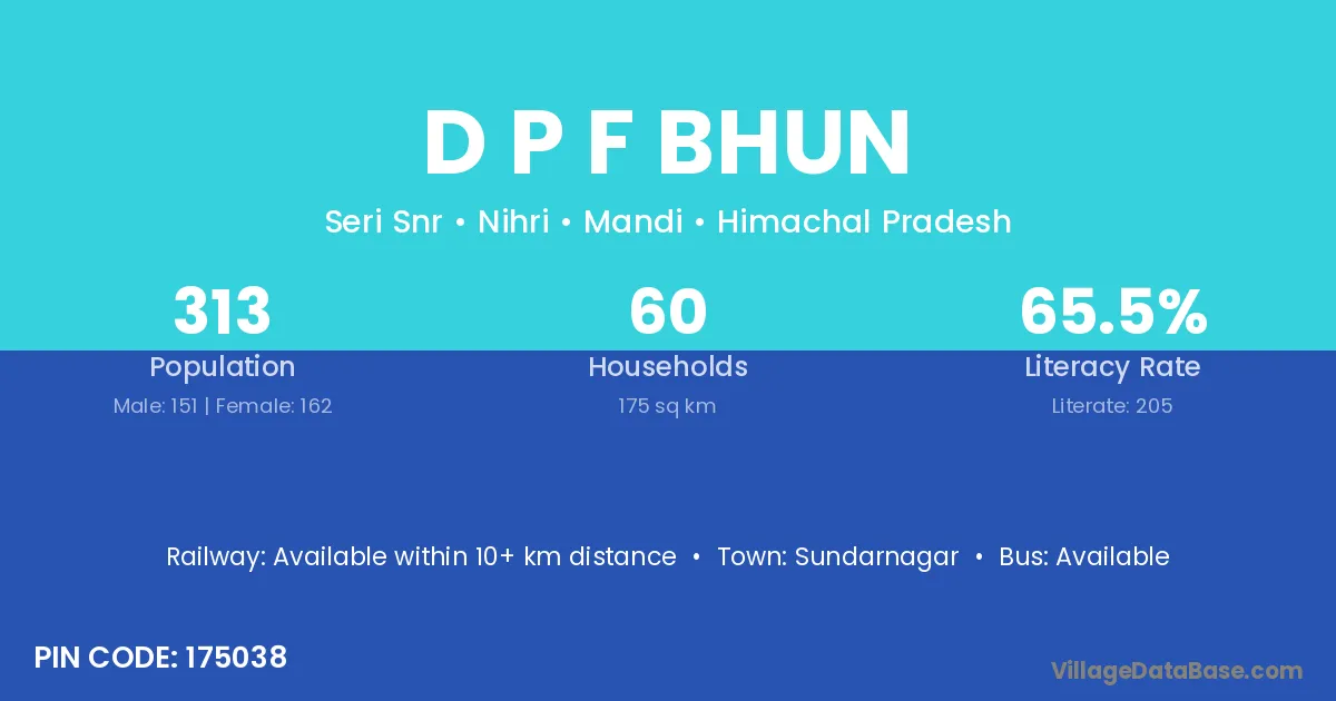 D P F Bhun village is located in the Nihri Tehsil of the Mandi district in Himachal Pradesh .