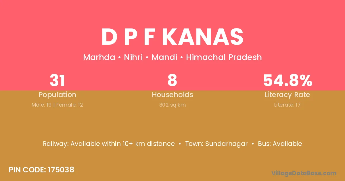 D P F Kanas village has a total population of 31 people, of which 19 are males and 12 are females.