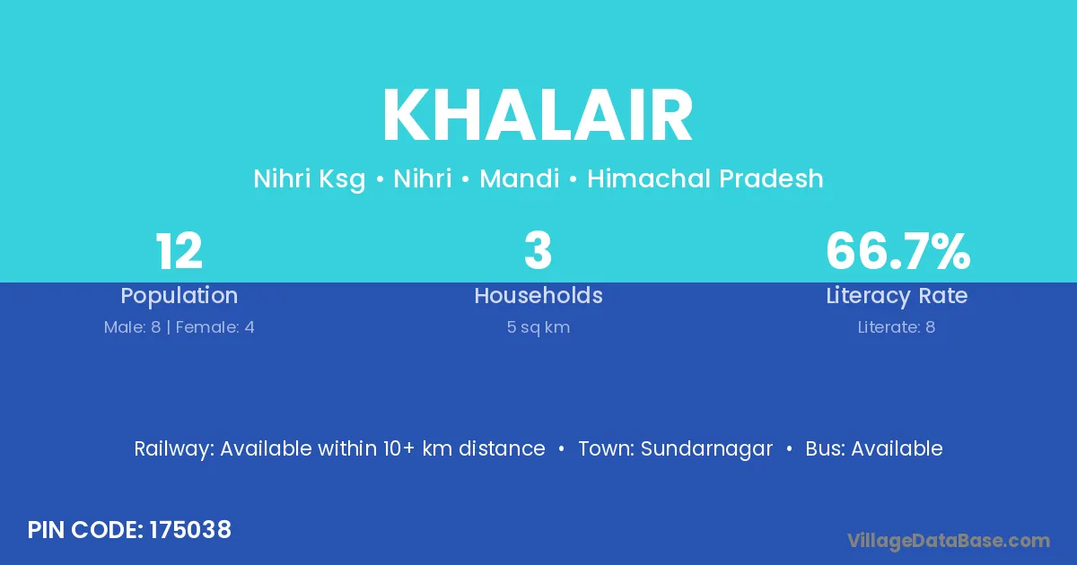 Khalair village has a total population of 12 people, of which 8 are males and 4 are females.