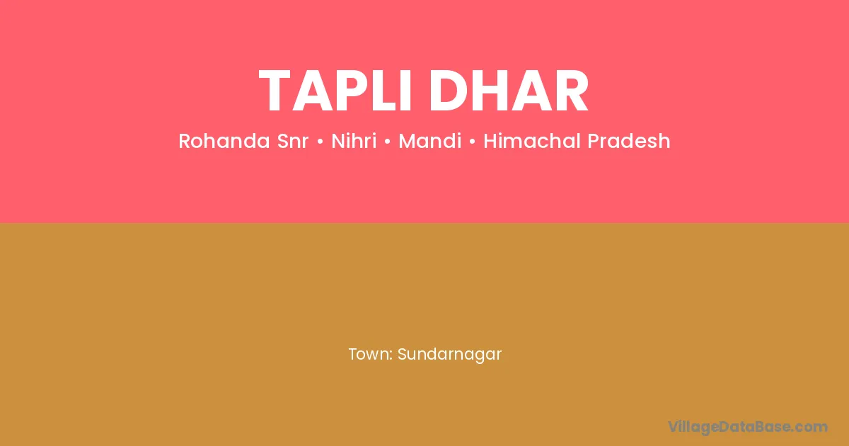 Sundarnagar is the nearest town to Tapli Dhar village for major economic activities