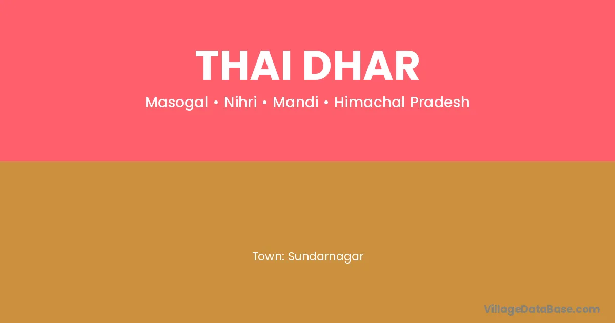Sundarnagar is the nearest town to Thai Dhar village for major economic activities