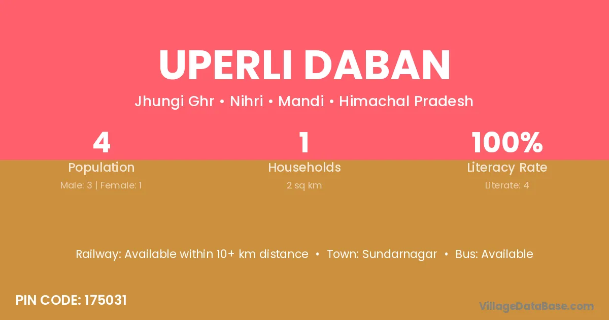 Uperli Daban village has a total population of 4 people, of which 3 are males and 1 are females.