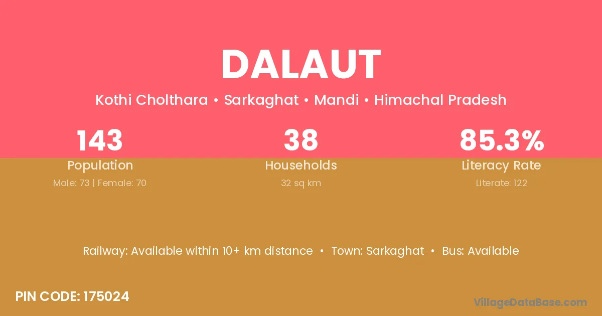 Sarkaghat is the nearest town to Dalaut village for major economic activities
