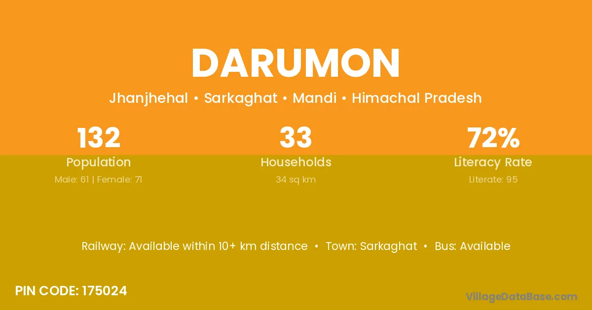 Sarkaghat is the nearest town to Darumon village for major economic activities