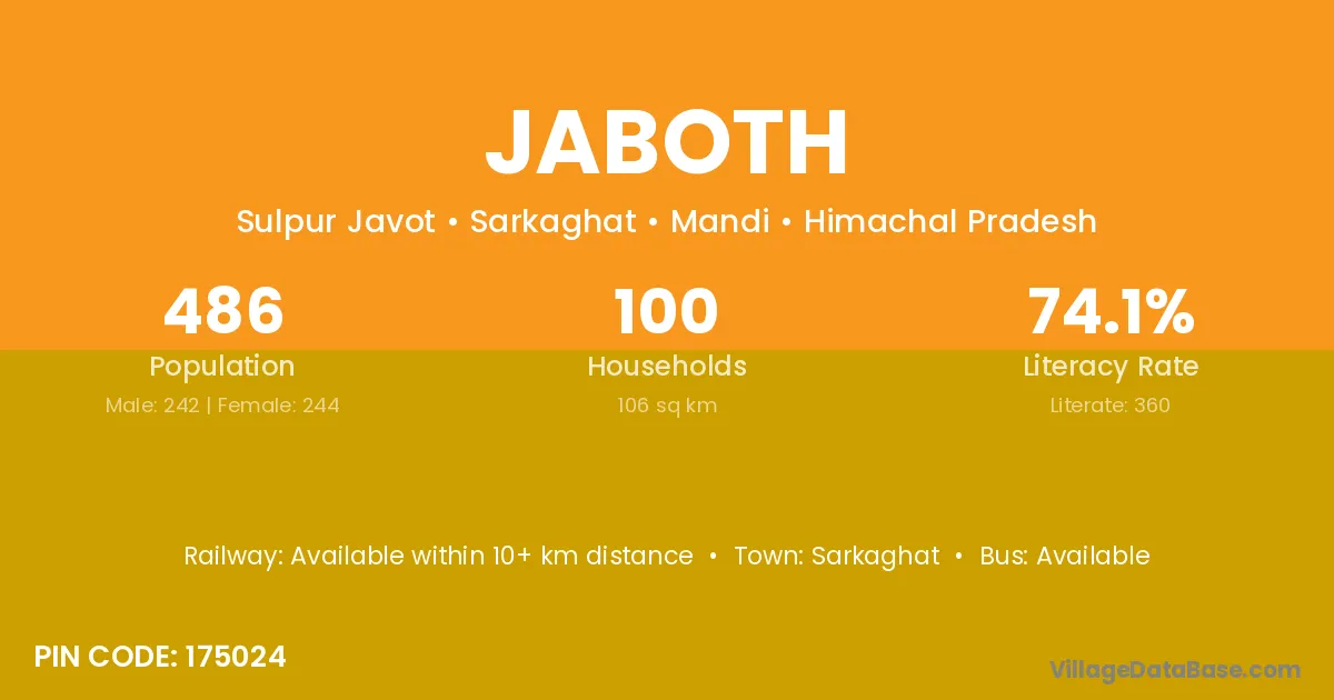 Sarkaghat is the nearest town to Jaboth village for major economic activities