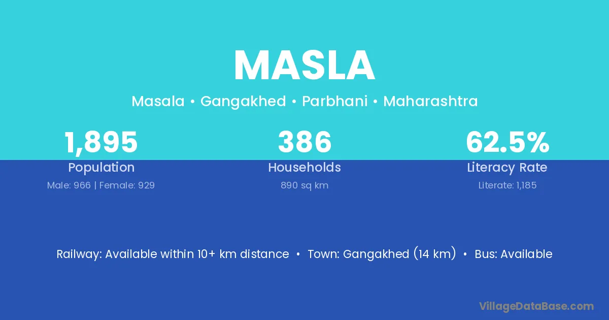Masla village has a total population of 120 people, of which 56 are males and 64 are females.