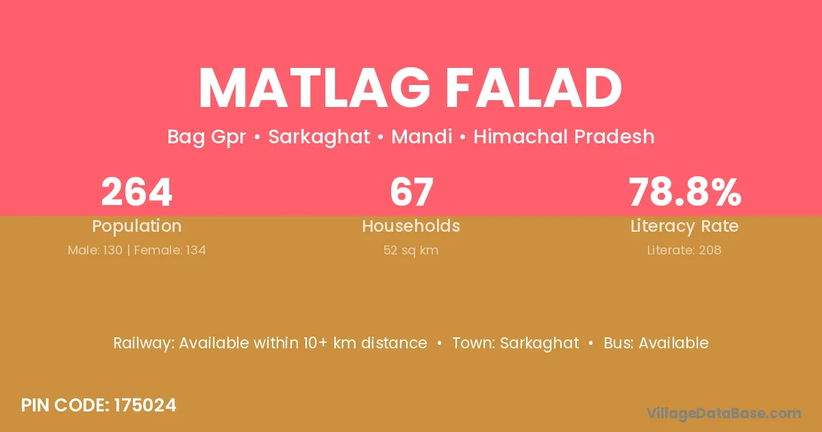 Matlag Falad village has a total population of 264 people, of which 130 are males and 134 are females.