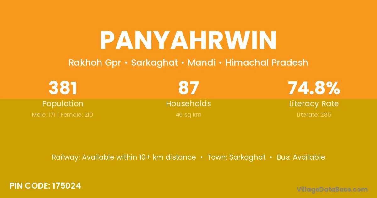 Panyahrwin village is located in the Sarkaghat Tehsil of the Mandi district in Himachal Pradesh .