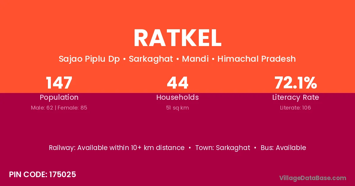 Sarkaghat is the nearest town to Ratkel village for major economic activities