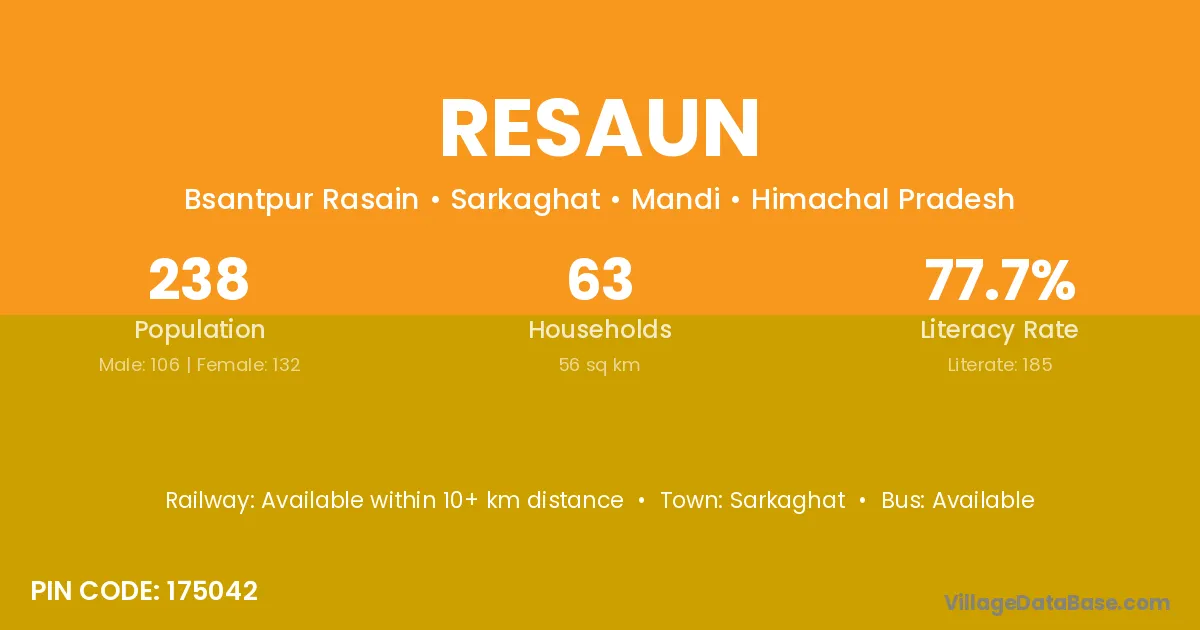 Sarkaghat is the nearest town to Resaun village for major economic activities