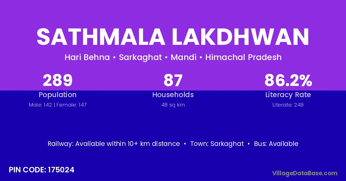 Sarkaghat is the nearest town to Sathmala Lakdhwan village for major economic activities