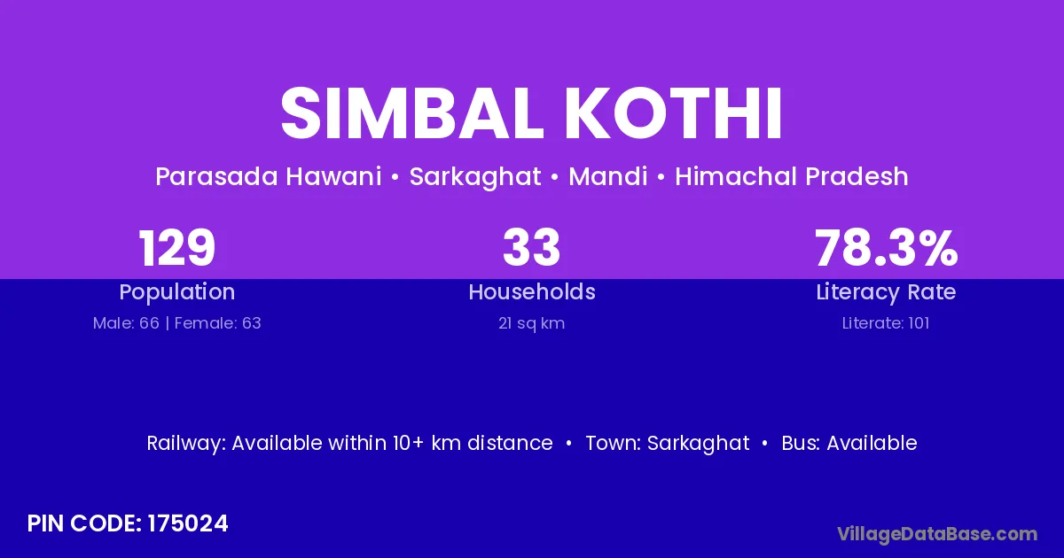 Simbal Kothi village has a total population of 129 people, of which 66 are males and 63 are females.